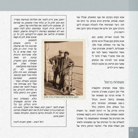 ראובן אהב וידע לספר את תולדות הנטיעות בשריד. הוא הפך חלק כל כך בלתי נפרד מהמטע, עד שנדמה לך, שהמטע יודע לספר את תולדותיו של ראובן. זו הייתה זכייה לעבוד במחיצתו. כולם למדו ממנו. הוא לא השתמש בשיטות דידקטיות איזשהן. דמותו אבא הקים בקיבוץ את ענף המטעים, שכלל עצי תפוח, אגסים, שזיפים וכרם גפנים. עד היום אני זוכר כיצד הצטרפתי אליו להובלת הענבים ליקב בזכרון יעקב, איך פרקו את הענבים בתוך היקב ואת ריחות היין. מול סככת האריזה במטע, נטע אבא בוסתן קטן שכלל הרבה מינים של עצי פרי: פומלות, אגוזי מלך, אשכוליות, לימונים, אתרוגים ועוד. מאוד התרגשתי כאשר לפני זמן מה אחד מחבריי בשריד סיפר לי שהוא זוכר לפרטיו את הבוסתן שאבי נטע וטיפח, ובו אהבנו לבלות כאשר היינו ילדים. משפחת ברומל בסוף שנות השישים התקשרה אליי הלן רוזנברג מארה"ב וסיפרה הדידקטיקה. לכן כל כך אהבנו אותו. לכן כה קשה להתנחם. זו הייתה אישיות מורכבת וכל מה שיועלה על הנייר, יהיה רק חלק זעיר ממה שראו בו כל אלה שהכירוהו היכרות קרובה. רבו מאוד השטחים בהם התעניין, ואפילו שלט, חוץ מהנטיעות והחקלאות. נתייתמה לא רק משפחתו. הוא היה חלק בלתי נפרד מנוף קיבוצנו, מהמטע, מאסיפת הקיבוץ והמילה כנות" - אולי היא שגרתית מדי בשביל לתאר את האופן בו התייחס לדברים. עם ראובן היה ביטחון בלתי מעורער. כולנו, כשעמדנו בפני איזו הכרעה מקצועית, היינו רגילים, כבר בלי המוסרית מילאה את מקום משים לומר: ״ראובן יבוא, נשאל את ראובן״. והוא היה בא ומביע בדרך האופיינית לו את יחסו לשאלה הנדונה. ועתה היו לו תוכניות נטיעה נרחבות. התכניות נשארו. כ-500 משפחות, הפזורות כיום בכל העולם. אילן היוחסין כולל פירוט מדויק של 11 דורות לאחור, עד ראשית המאה השמונה עשרה (1743). היא ביקשה שאוסיף את הפרטים של משפחתי המצומצמת כדי שתוכל להשלים את כל הפרטים של עץ המשפחה ולאחר מכן תשלח אותו אליי. התיעוד הרחוק ביותר של רחל דנציג - מתוך חוברת לזכרו לי שהיא הכינה עץ משפחה של ראובן ברומל על סיפון האונייה בדרך לארץ משפחת ברומל, bruml, הכולל ראובן איננו. 10